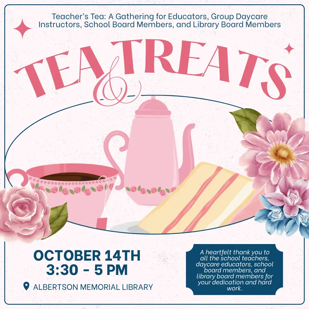 A Gathering for Educators, Group Daycare Instructors, School Board Members, and Library Board Members. Refreshments provided.