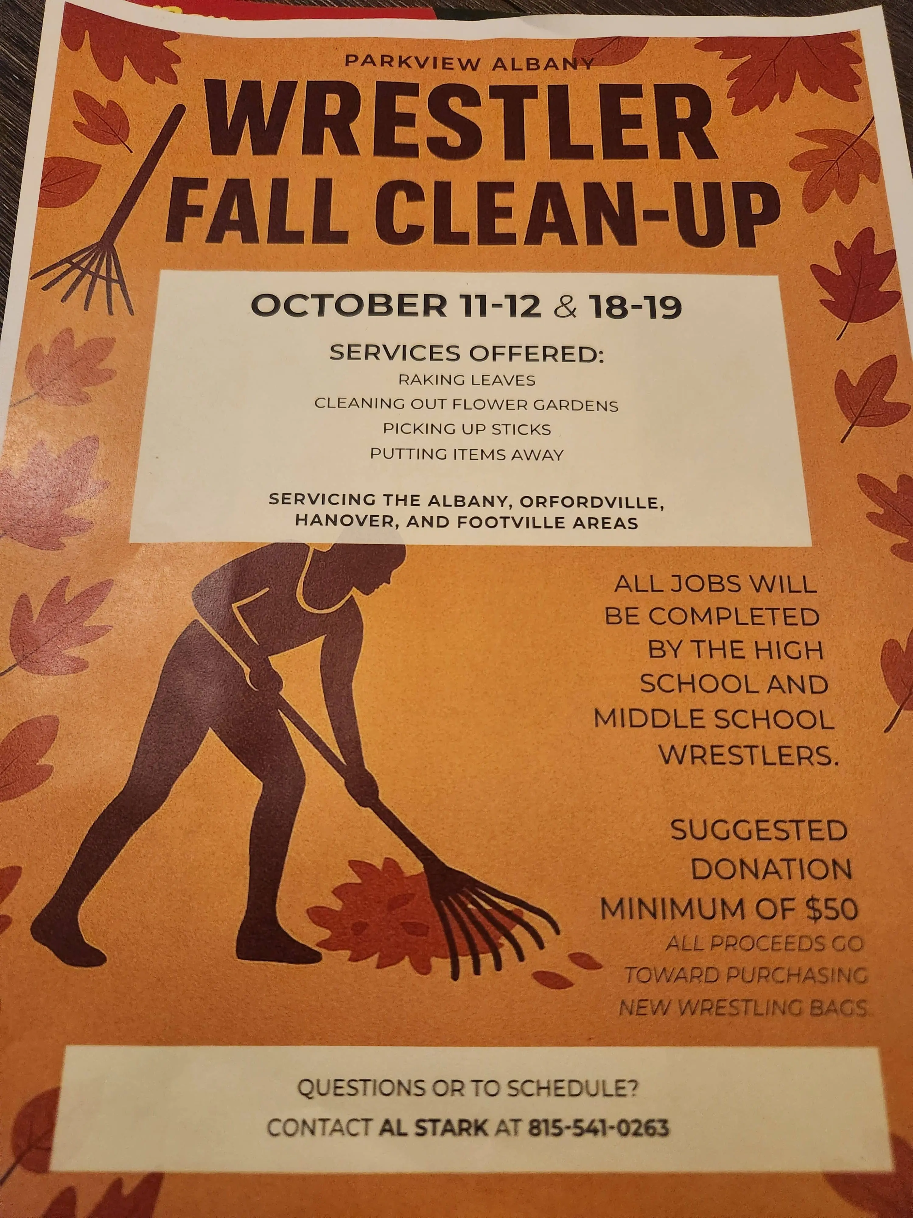 This is the fall cleanup fundraiser that the Parkview/Albany Wrestling team is doing. It is important to us coaches to get the kids out doing work and helping the community. And to teach them to work together